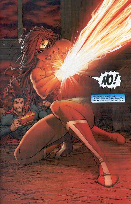 Batman se cruzó por el cielo con el avión y capturó a Kara con una red especial que tenía preparada. Se dirigió hacia el cuartel general de la JLA. Clark se deshizo del anillo con dolor y lo introdujo en la hebilla forrada de su cinturón. Nuevamente la kryptonita no era el peor de los sufrimientos posibles.