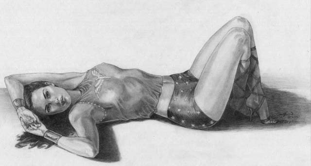 La chica tenía el pelo castaño rizado, le caía en una melena larga por la cintura. En un momento dado se empezó a quitar la ropa y se quedó sólo con la ropa interior. Clark puso el rostro entre las manos y empezó a mirar al suelo para evitar ficharla constantemente. La chica se le acercó y se puso en cuclillas delante de él/ella